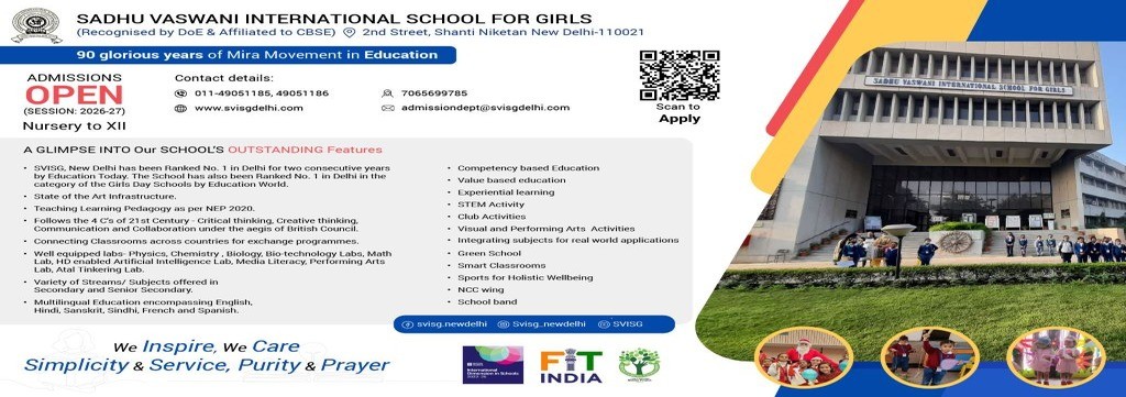 OUR VISION Sadhu Vaswani International School for Girls aims to be a centre for holistic and integral development epitomizing world class education and transforming the girl child into global citizens by fostering Courage, Compassion, Character and Commitment as envisioned by Sadhu Vaswani.
