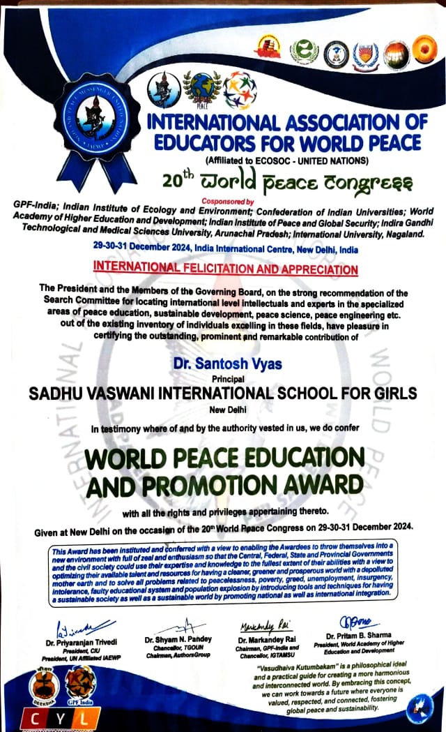 WORLD PEACE EDUCATION AND PROMOTION AWARD