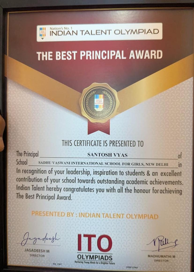 INDIA TALENT OLYMPIAD SVISG BEST SCHOOL AWARD